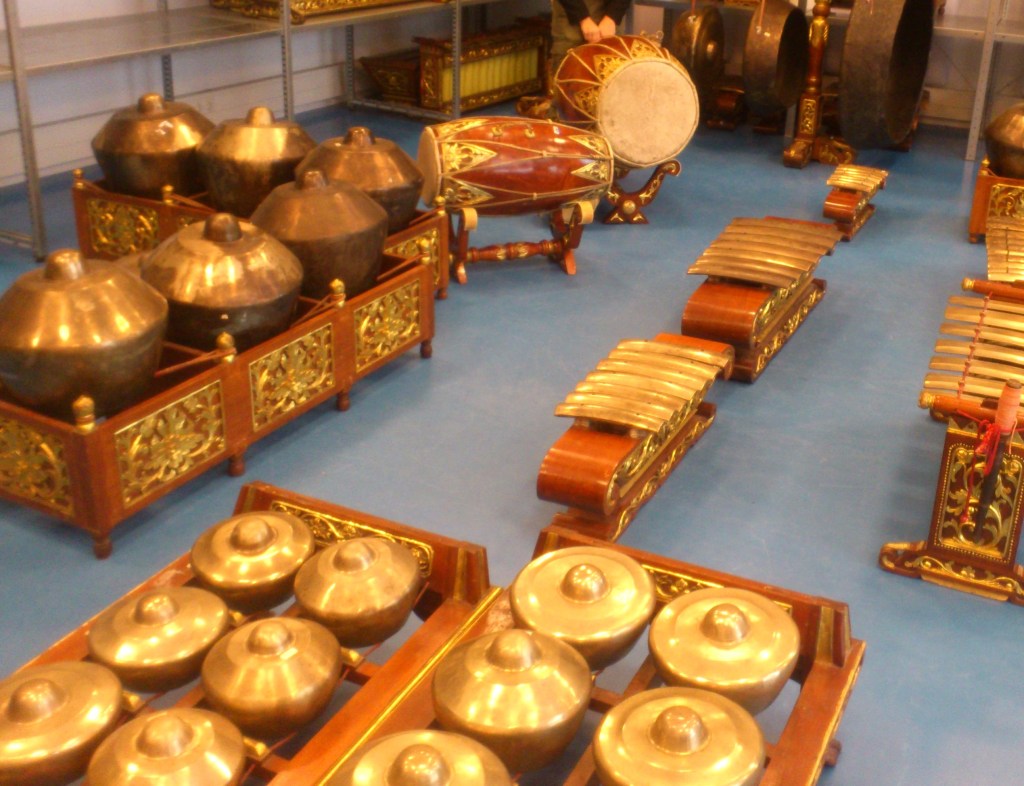 Een gamelan is een orkest met bronzen gongs, ketels, xylofoons en trommels afkomstig van het Indonesische eiland Java.